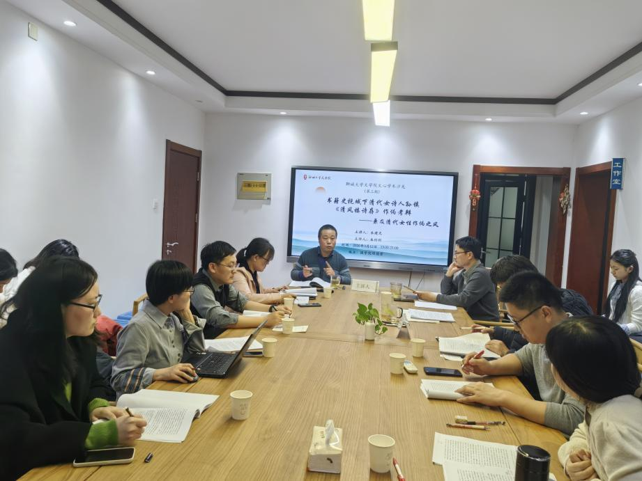 2026年3月12日,聊城大学文学院第三期文心学术沙龙在国学院明德堂举行。本次讲座主题为《书籍史视域下清代女诗人孙镇〈清风楼诗存〉作伪考辨——兼及清代女性作伪之风》,由朱建光博士主讲,朱付利博士主评,宁登国教授主持,参与师生30余人。